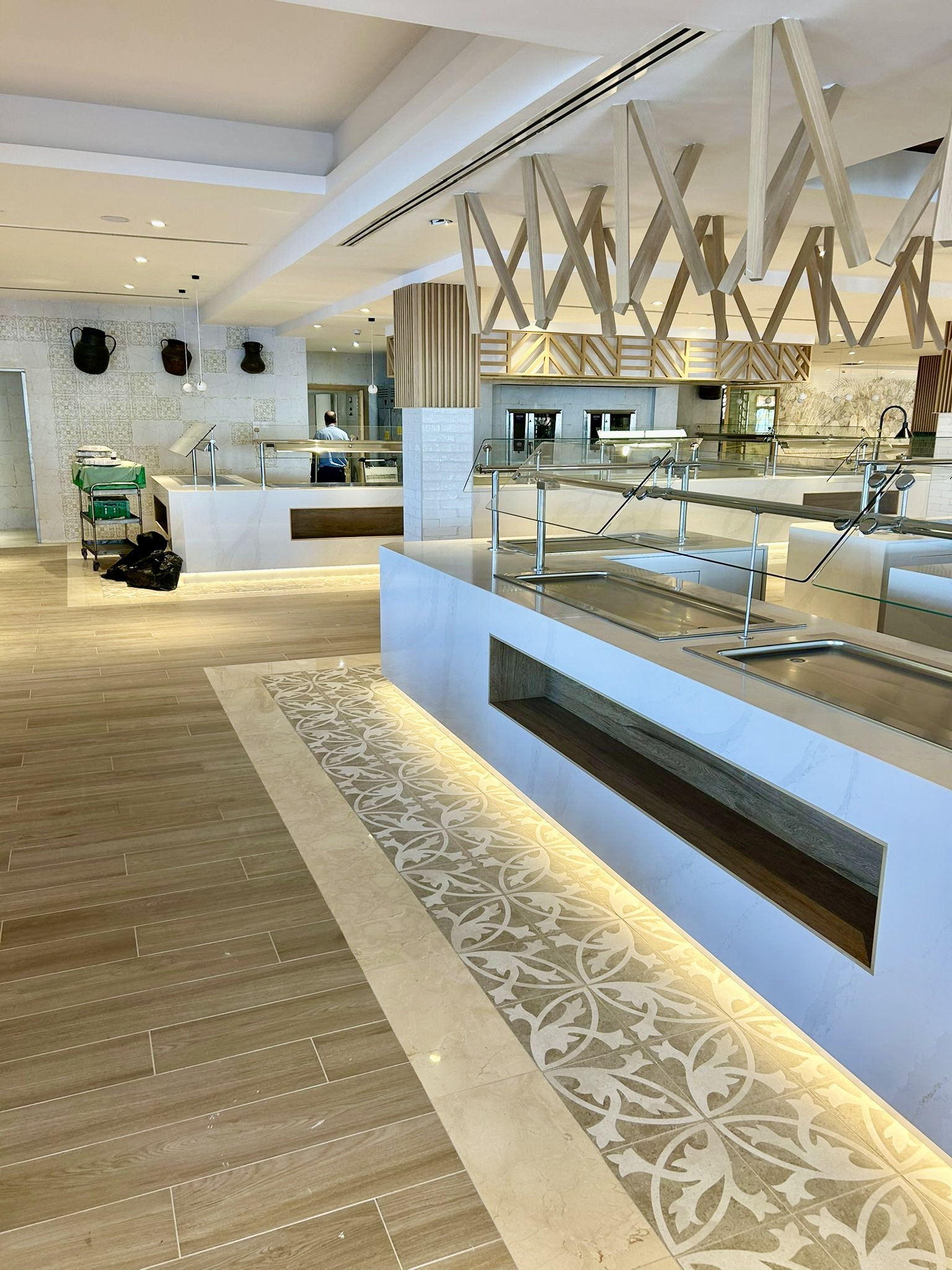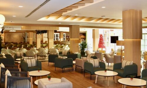 Renovación de zonas comunes, habitaciones y áreas exteriores, incorporando mobiliario actualizado, acabados naturales, diseño ergonómico y vistas panorámicas, junto con restaurantes modernizados que destacan por su iluminación y sofisticación.